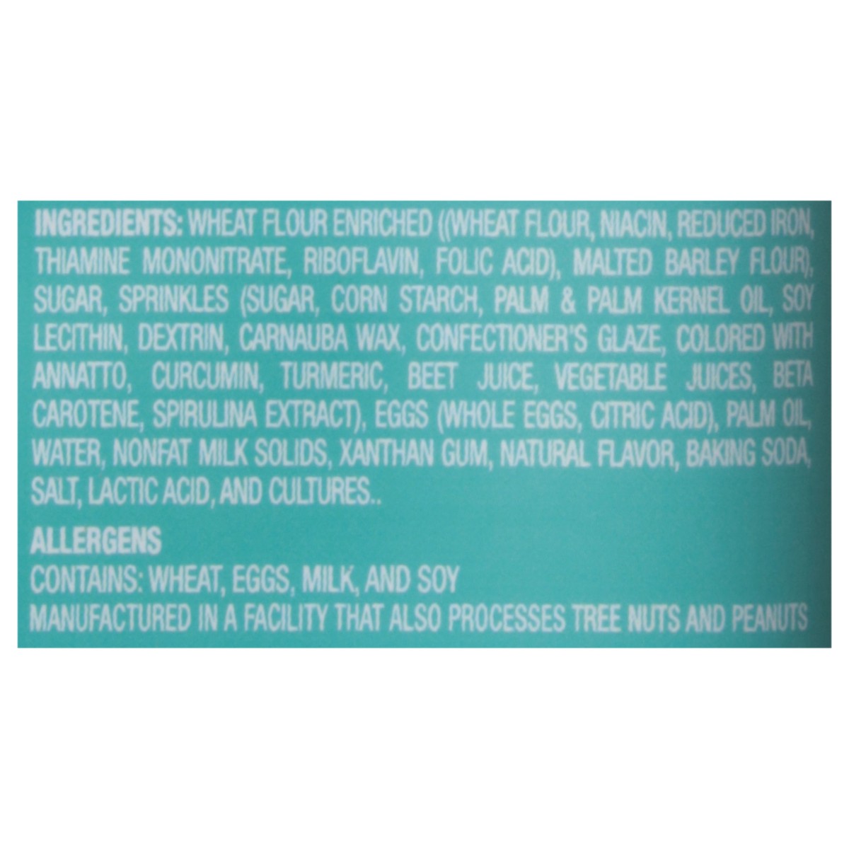 Wheat Flour Enriched ((Wheat Flour, Niacin, Reduced Iron, Thiamine Mononitrate, Riboflavin, Folic Acid), Malted Barley Flour, Sugar, Sprinkles (Sugar, Corn Starch, Palm & Palm Kernel Oil, Soy Lecithin…