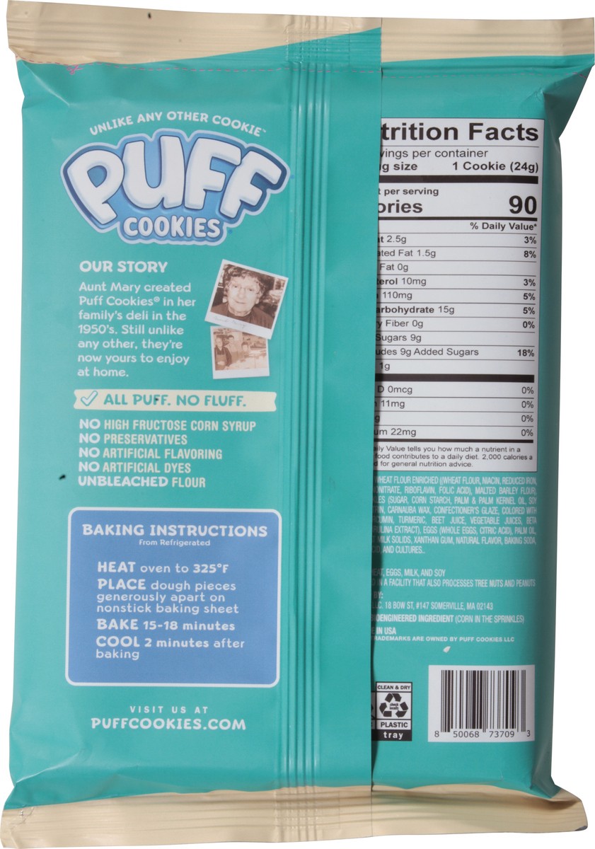 Puff Cookies Confetti Cookie Dough bakes a light, airy, and fluffy style of cookie that is truly unlike any other! Pre-portioned and ready-to-bake, Puff Cookies are ready in minutes with no mess, maki…