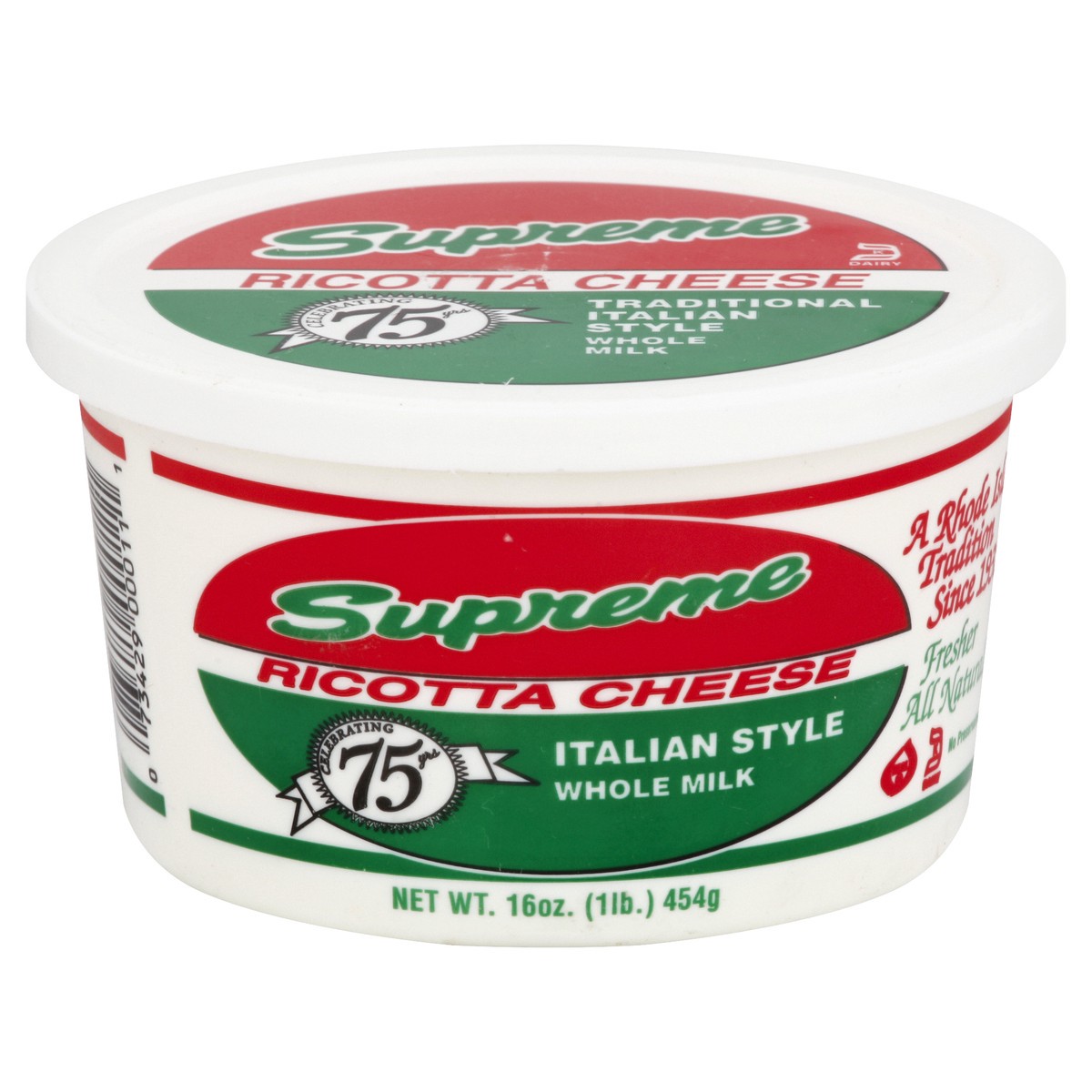 Whole milk. Celebrating 75 yrs. Traditional Italian style. A Rhode island tradition since 1932. Fresher all natural. Real. No preservatives. www.supremedairyfarms.com.