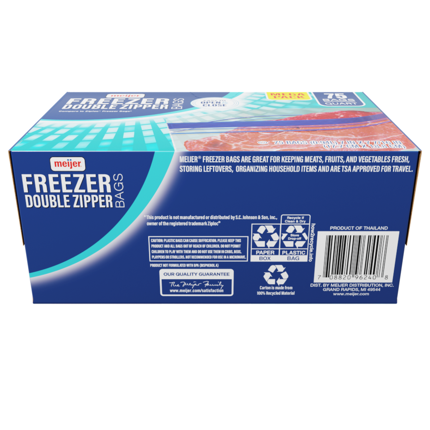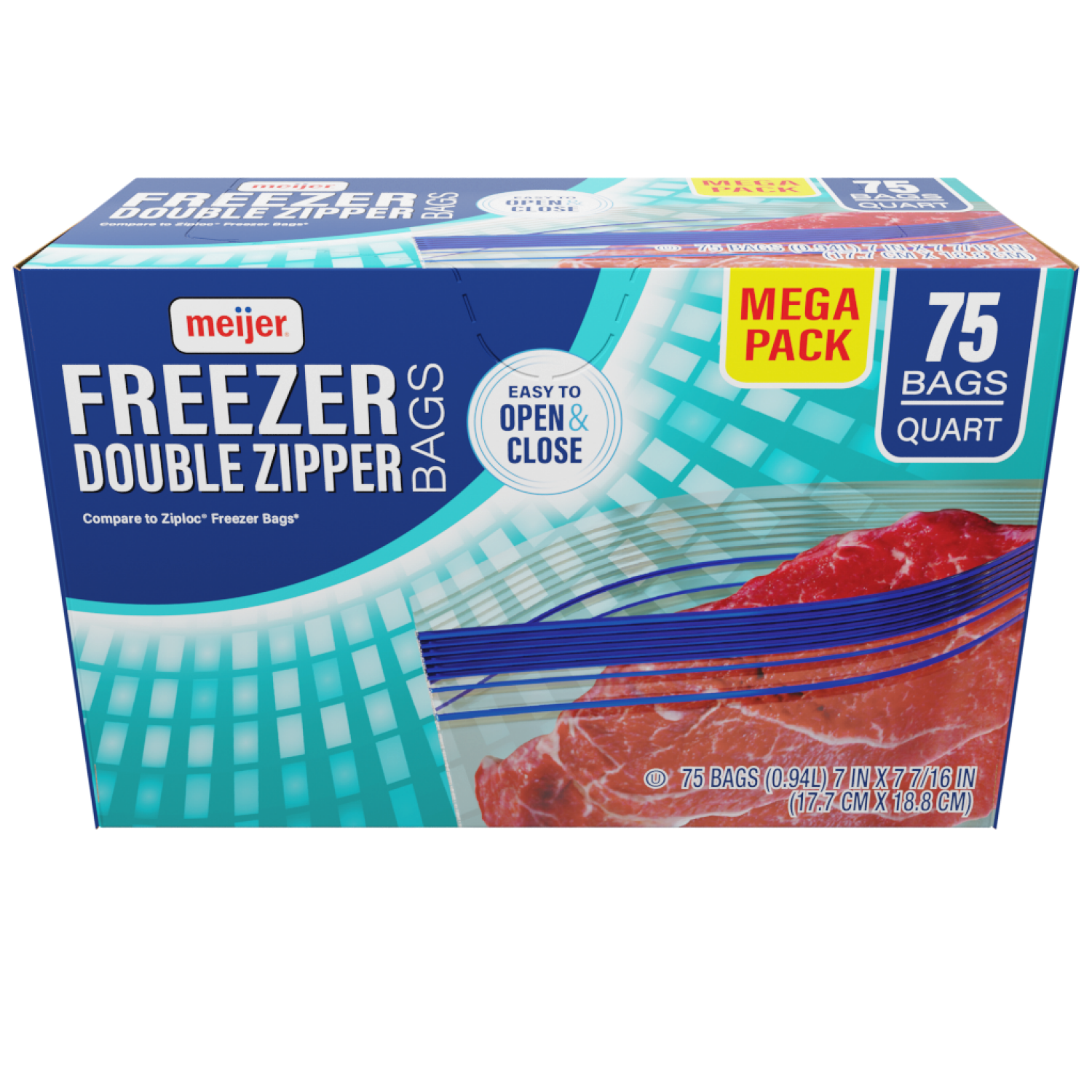 Meijer Re-Closable Double Zipper Quart Freezer Bags
