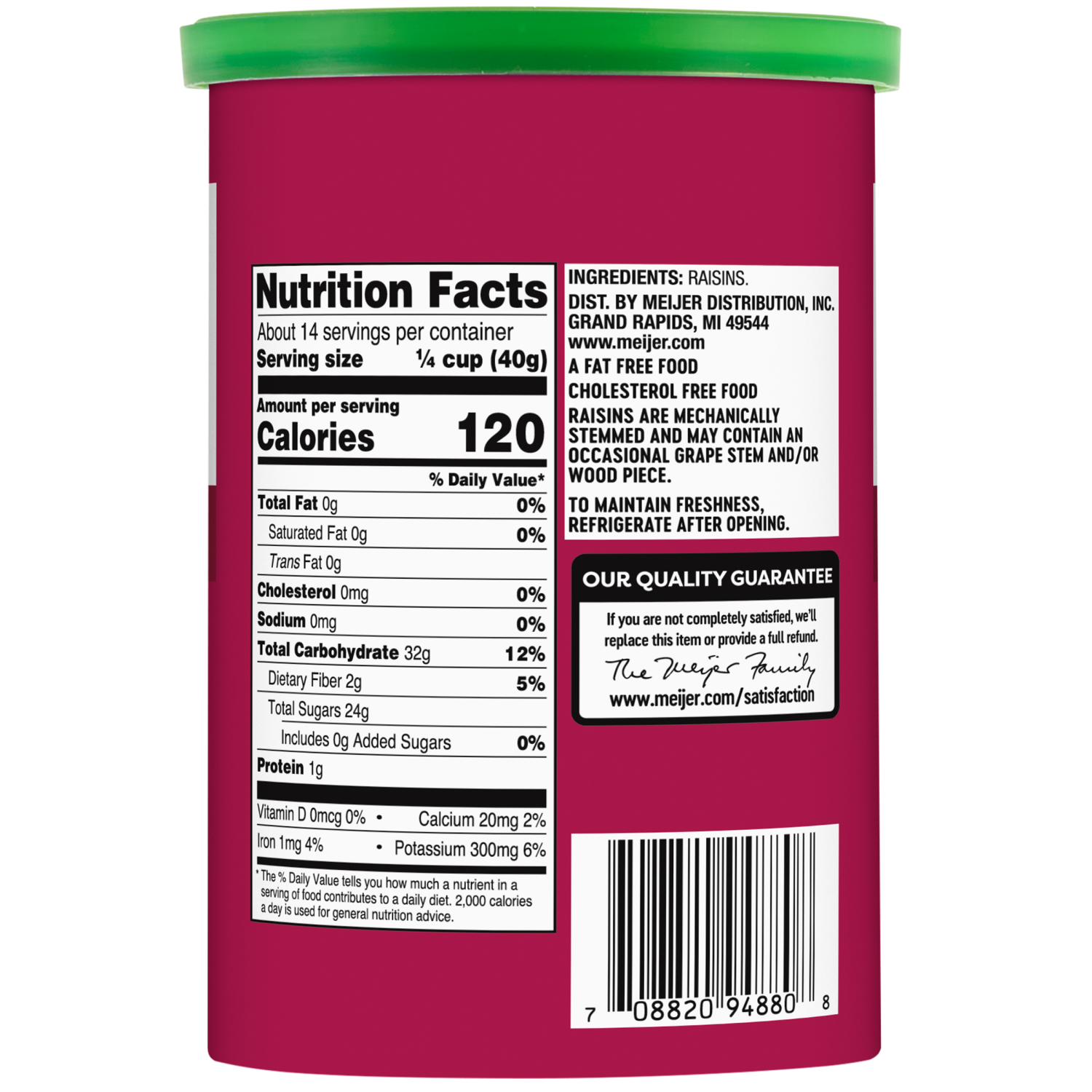 From oatmeal raisin cookies to rich salads, Meijer Raisins are an incredibly versatile kitchen staple! Made with 100% fruit and no artificial preservatives, this sweet snack will satisfy the entire fa…