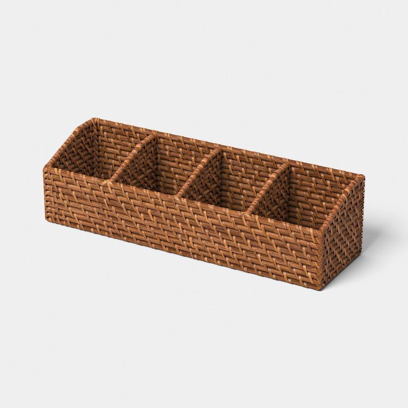 Keep your napkins organized with this Woven Rattan Napkin Holder from Threshold™. Made of rattan material, this napkin holder boasts a woven finish in natural hue for a rustic, earthy charm. It is des…