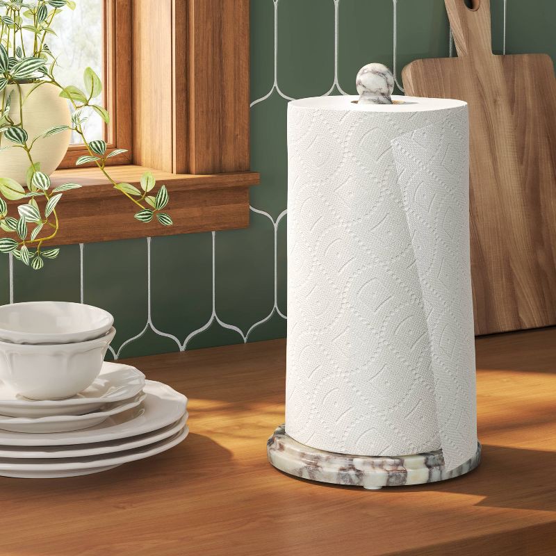 Elevate the look and feel of your home with this Bianco Voila Paper Towel Holder from Threshold™. This paper towel holder is made of Bianco Voila marble featuring dark gray-violet veining on a creamy …