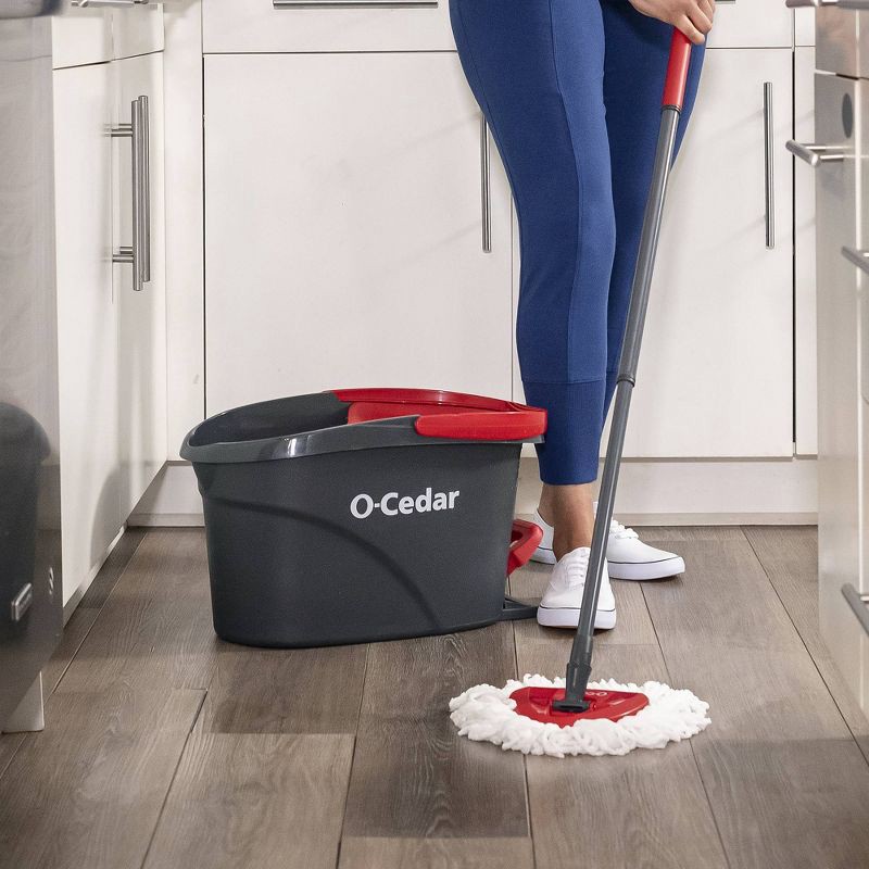 - REMOVES OVER 99% OF BACTERIA W/ JUST WATER: O-Cedar's EasyWring Microfiber Spin Mop & Bucket Floor Cleaning System provides a deep-cleaning solution for all your at home needs by effectively removing dirt, grime and over 99% of bacteria with just water! It is safe on all hard floor surfaces, including finished hardwood, wood, laminate, tile, vinyl, and more