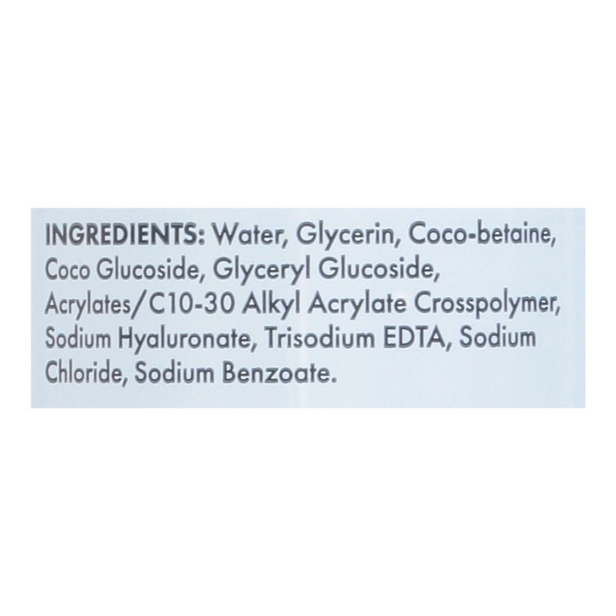 Water, Glycerin, Coco-Betaine, Coco Glucoside, Glyceryl Glucoside, Acrylates/C10-30 Alkyl Acrylate Crosspolymer, Sodium Hyaluronate, Trisodium EDTA, Sodium Chloride, Sodium Benzoate.