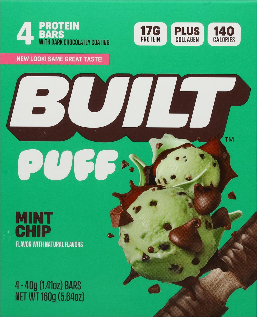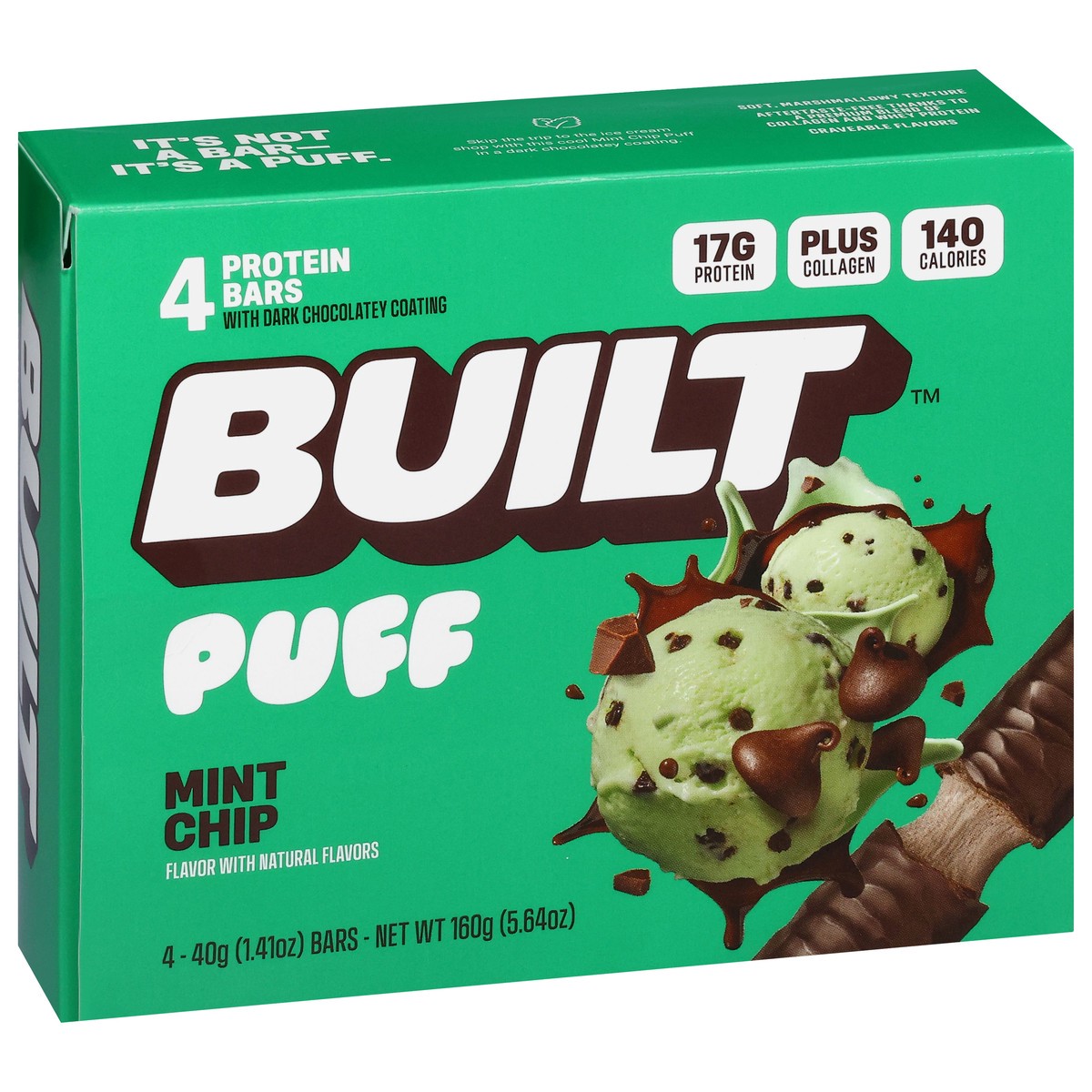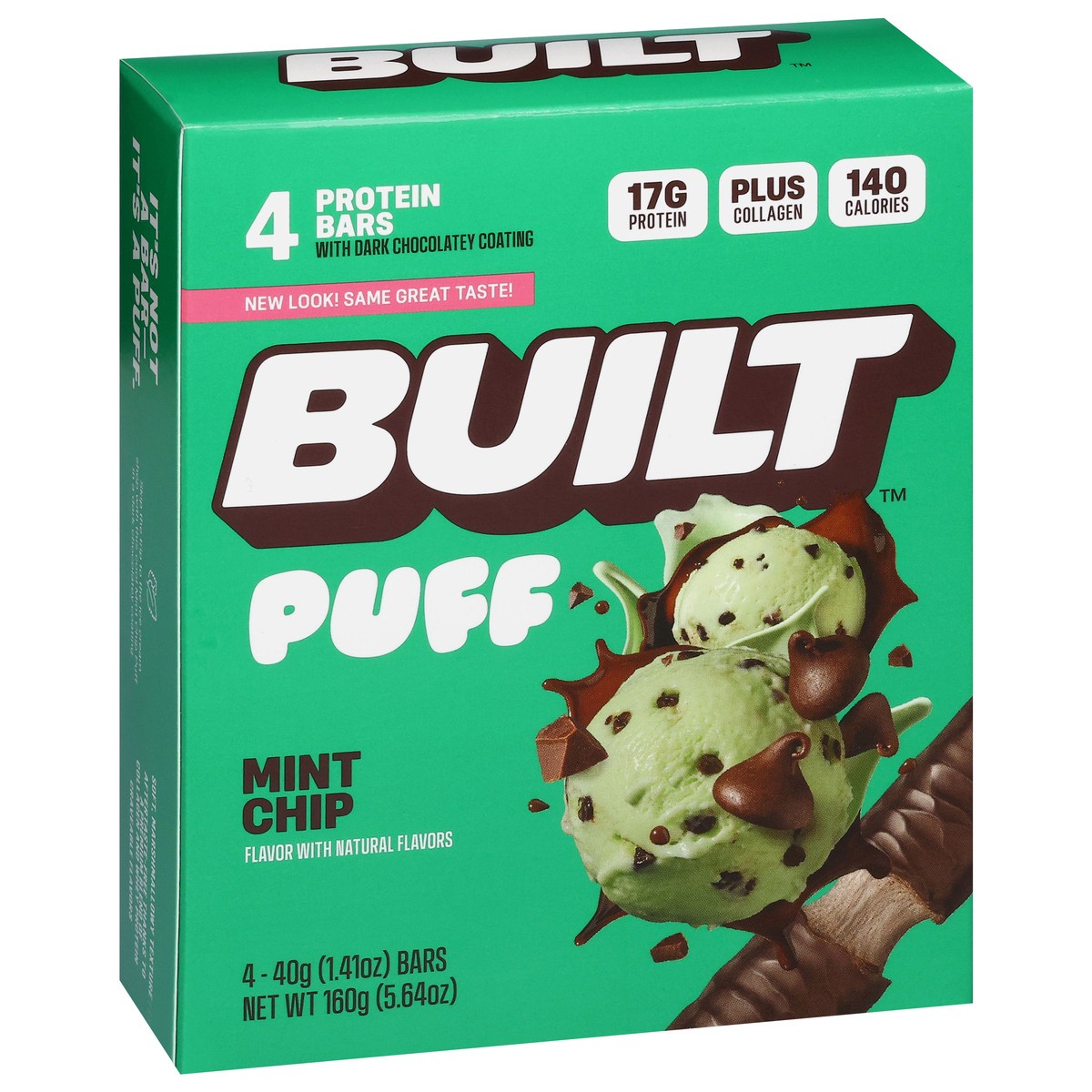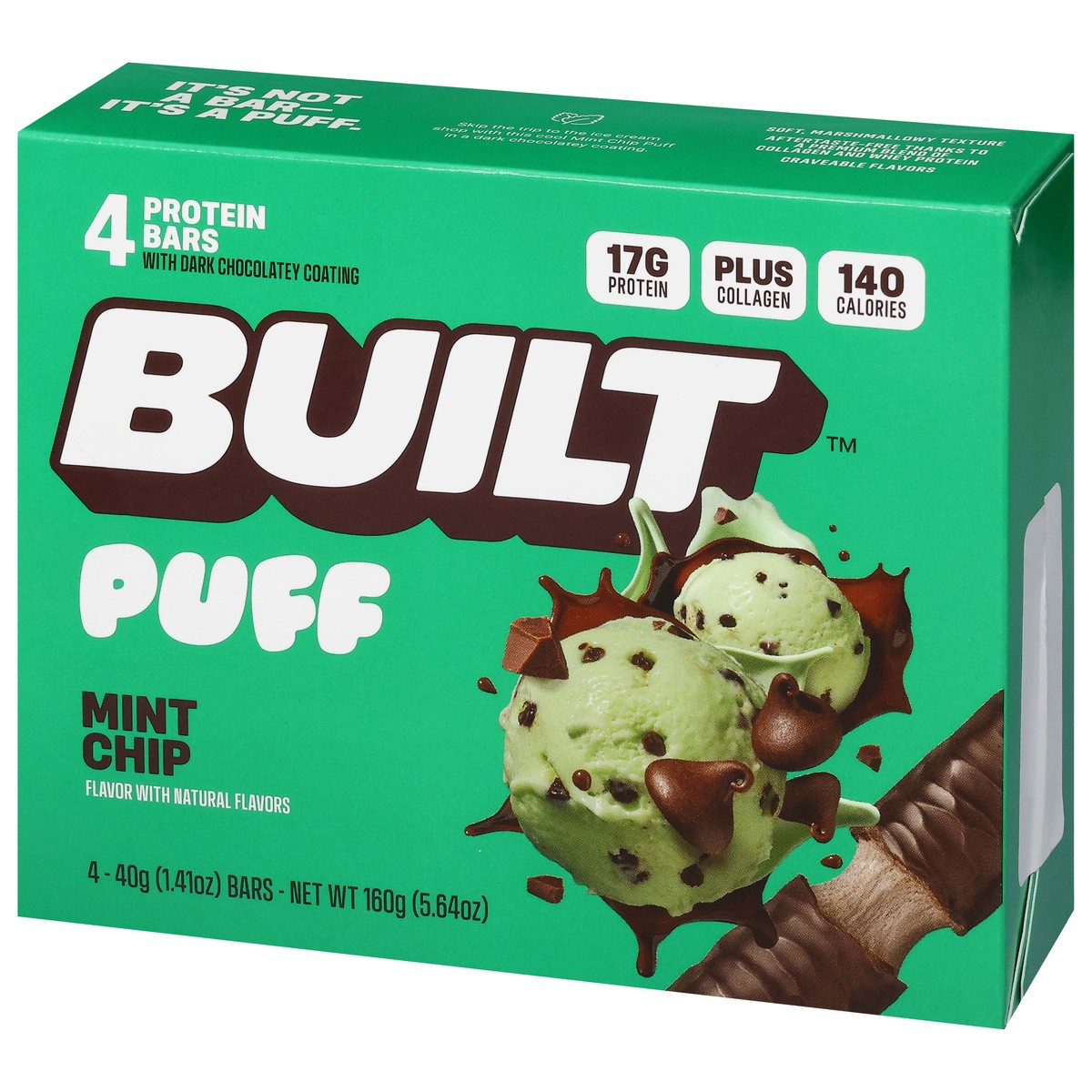 Built Indulge in the refreshing taste of BUILT's Mint Chip Puff Protein Bar, the ultimate treat for mint chocolate lovers. This airy, chocolatey delight delivers the cool, satisfying flavor of mint ch…