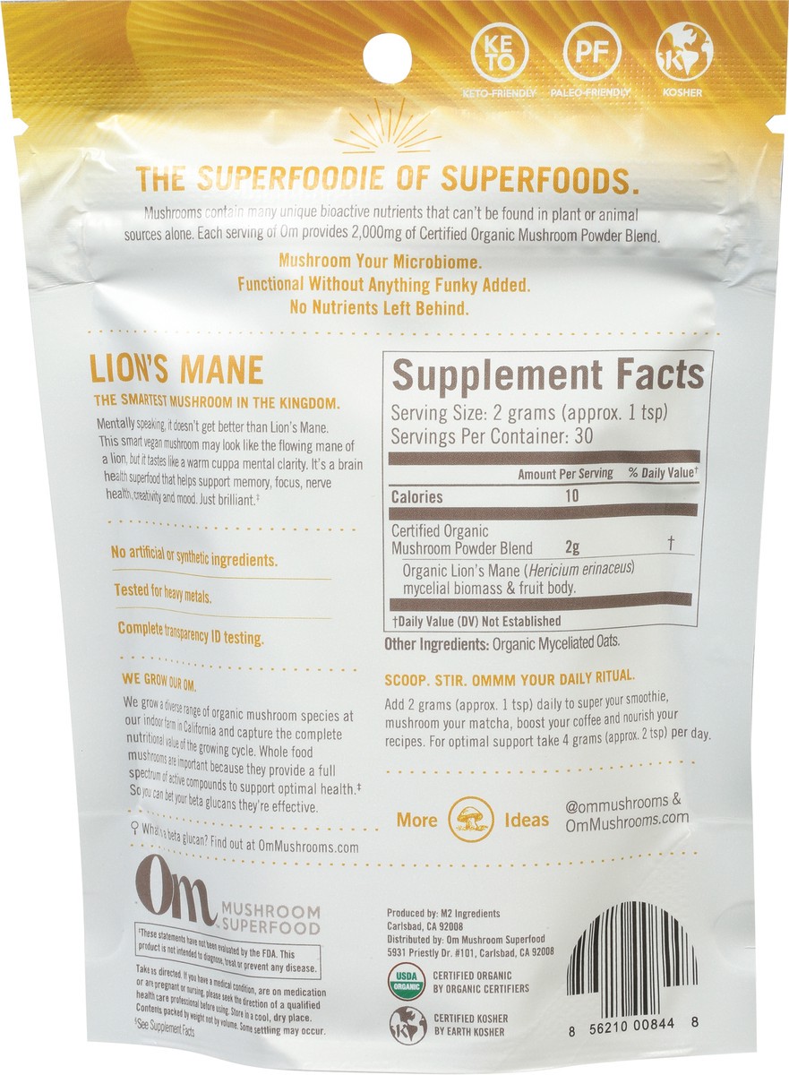 Om Mushroom Superfood Lion's Mane Mushroom Powder 2.1 oz