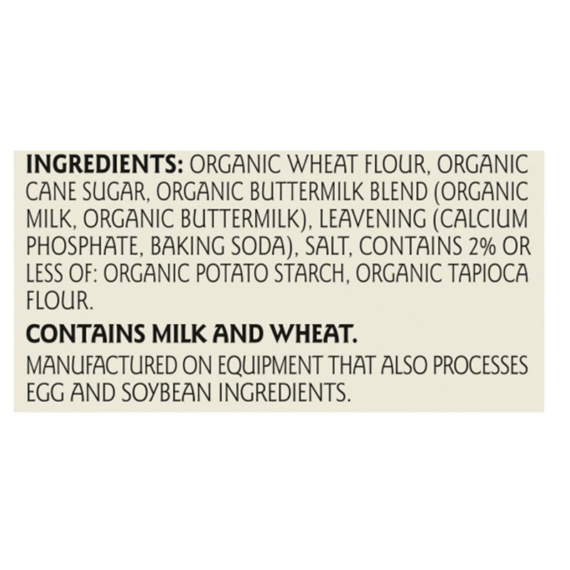 Organic Wheat Flour, Organic Cane Sugar, Organic Buttermilk Blend (Organic Milk, Organic Buttermilk), Leavening (Calcium Phosphate, Baking Soda), Salt, Contains 2% or Less of: Organic Potato Starch, O…
