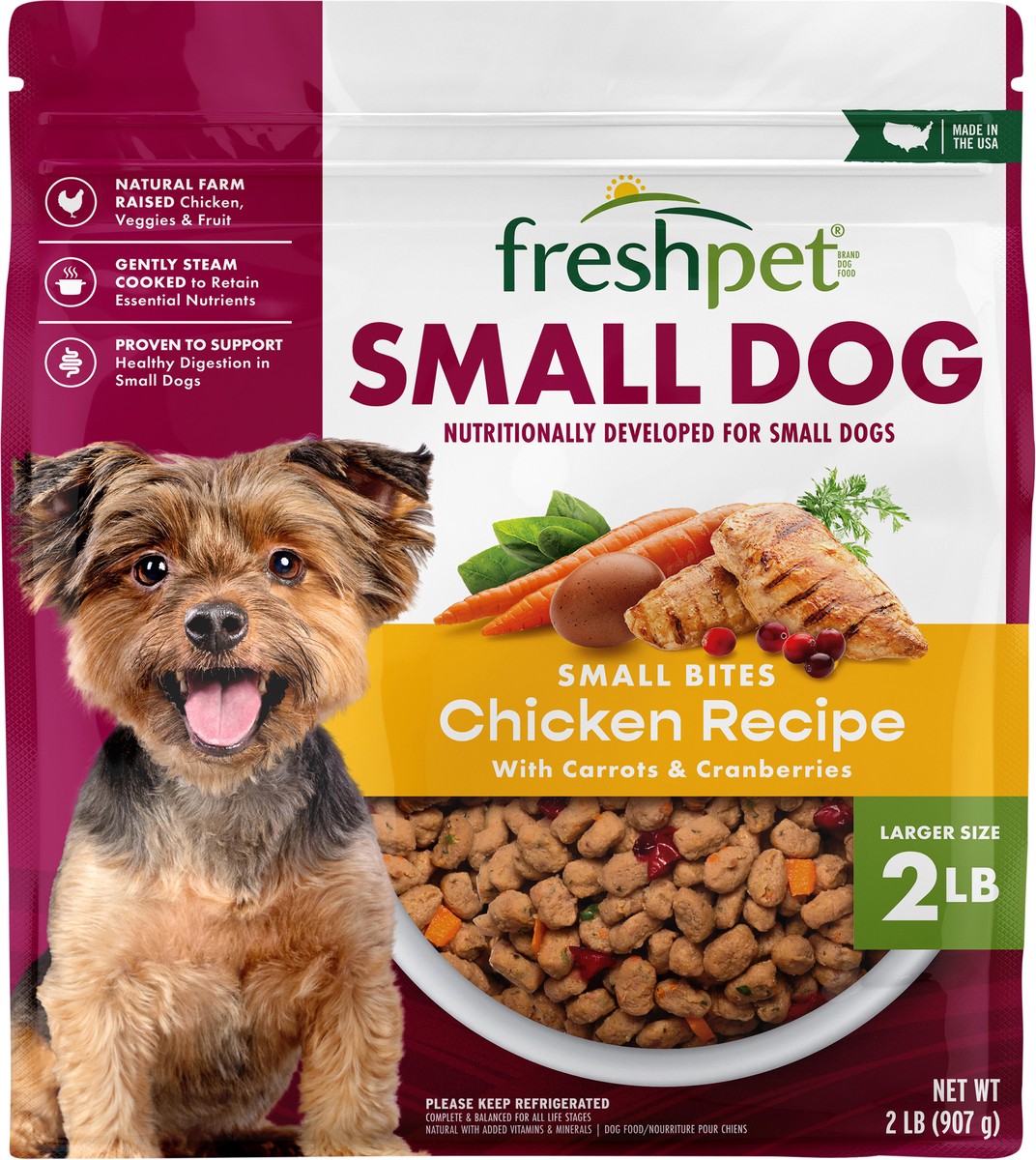 Calorie Content (calculate): Metabolizable Energy (ME) 1,946 kcal / kg, 883 kcal / lb, 267 kcal / cup. Freshpet Small Dog Small Bites Chicken Recipe With Carrots & Cranberries is formulated to meet th…