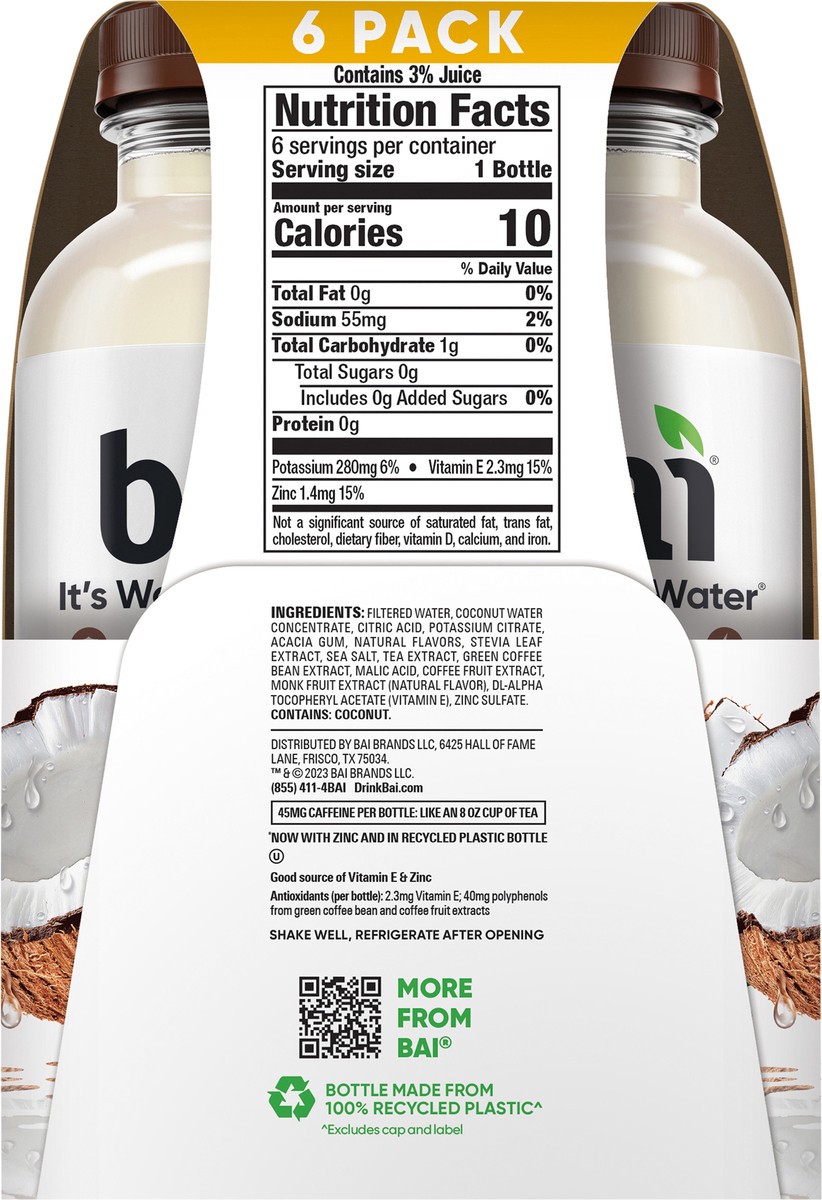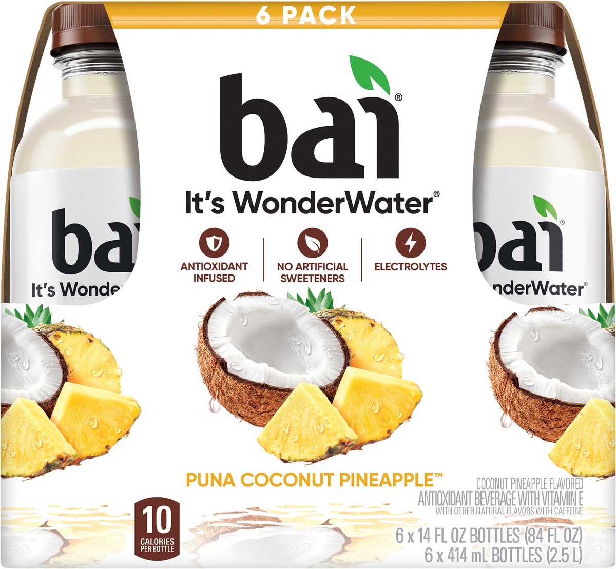 Bai Coconut Flavored Water, Puna Coconut Pineapple, Antioxidant Infused Beverage, 14 fl oz Bottles, 6 Pack