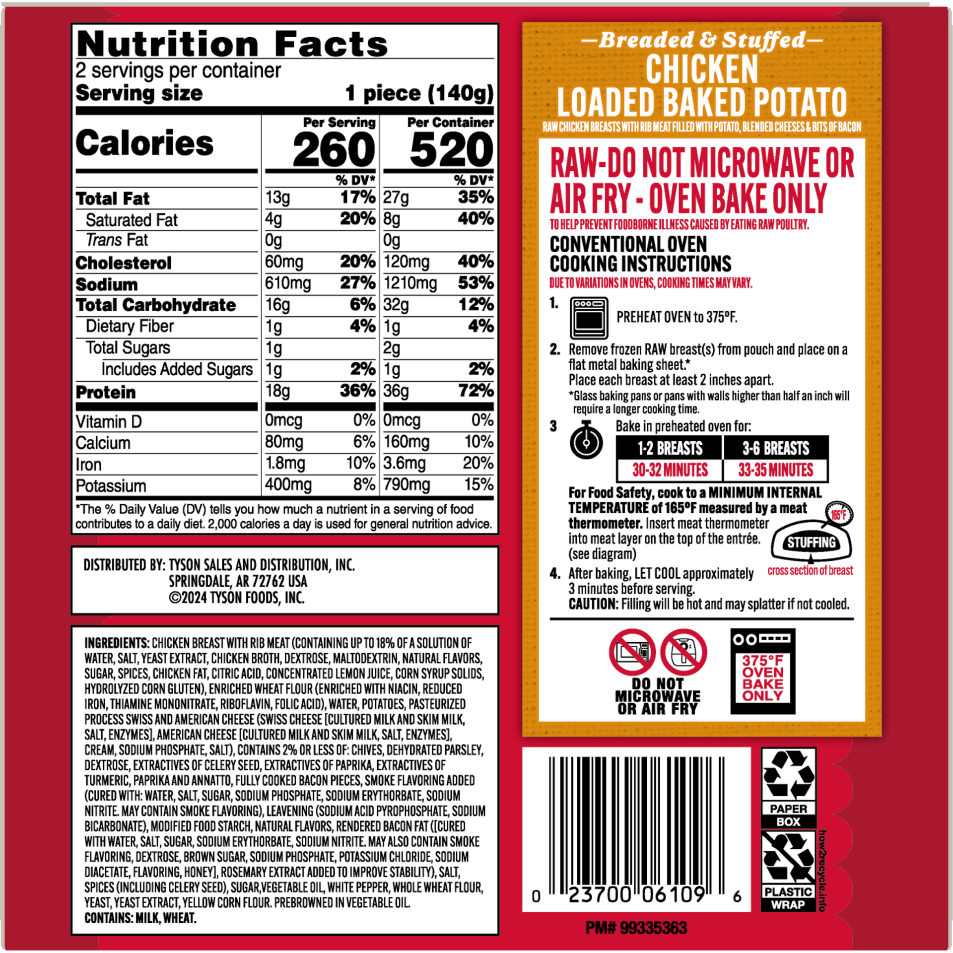 For a delicious entree that is easy to prepare, Tyson Breaded Raw Stuffed Chicken Breasts Loaded Baked Potato are perfect for any night of the week. We start with a creamy blend of cheeses, add potato…