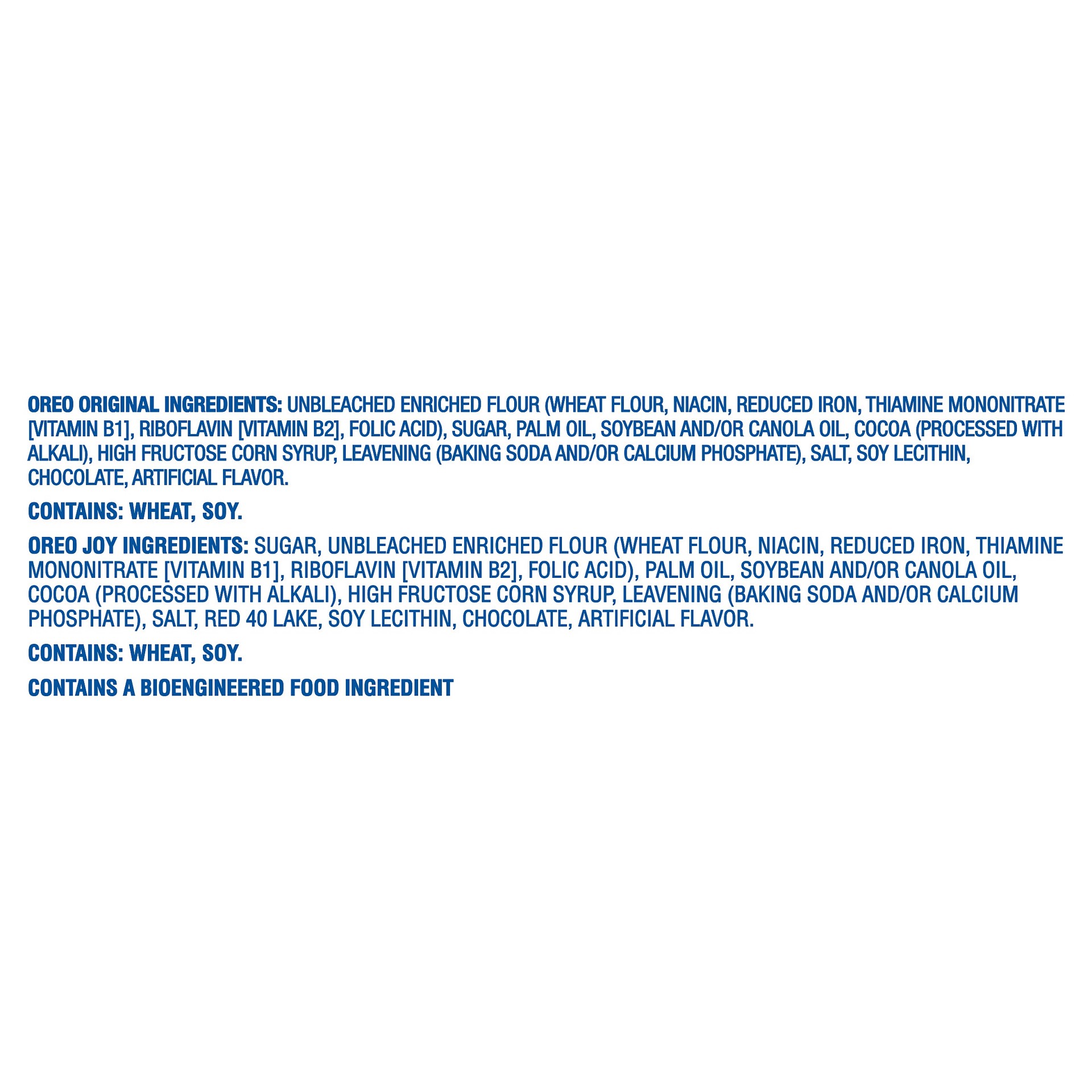 Oreo Original: Oreo Original Ingredients: Unbleached Enriched Flour (Wheat Flour, Niacin, Reduced Iron, Thiamine Mononitrate [Vitamin B1], Riboflavin [Vitamin B2], Folic Acid), Sugar, Palm Oil, Soybea…