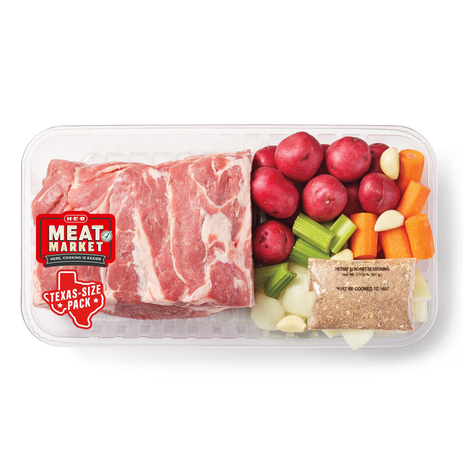 H-E-B Meat Market Pork Roast Kit - Bone-In Picnic Roast & Vegetables - Texas-Size Pack