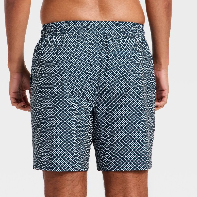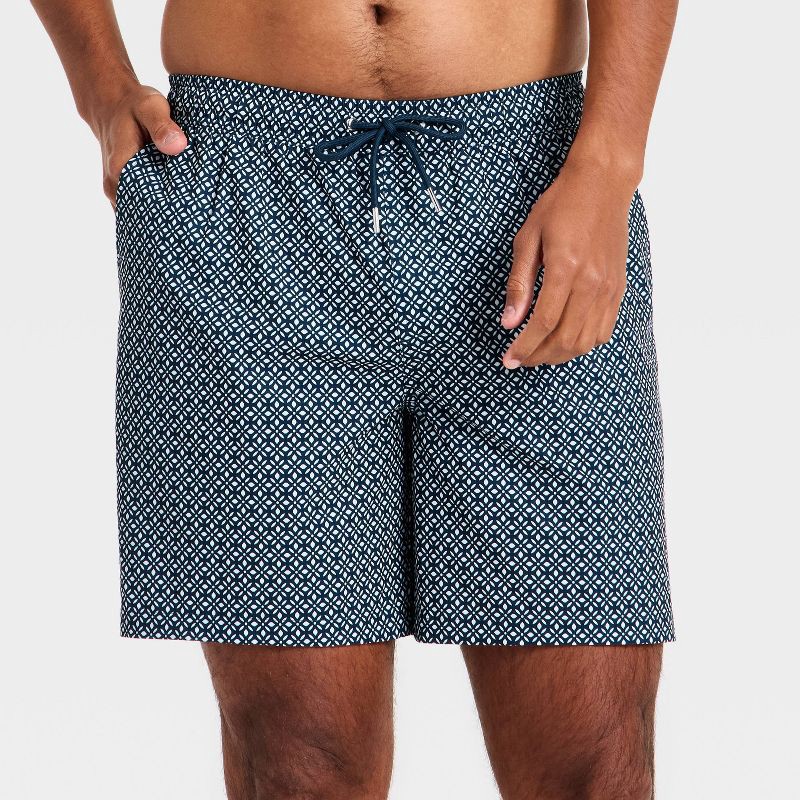 Men's 7'' Swim Trunks with Boxer Brief Liner - Goodfellow & Co™ Navy Geo XL