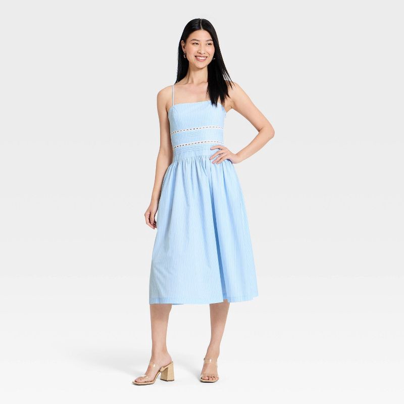 Bring out your confident and fashionable side in this Lace Trim Midi Dress from A New Day™. Made of cotton fabric with recycled polyester-cotton blend lining, this midi dress keeps you in cool comfort…