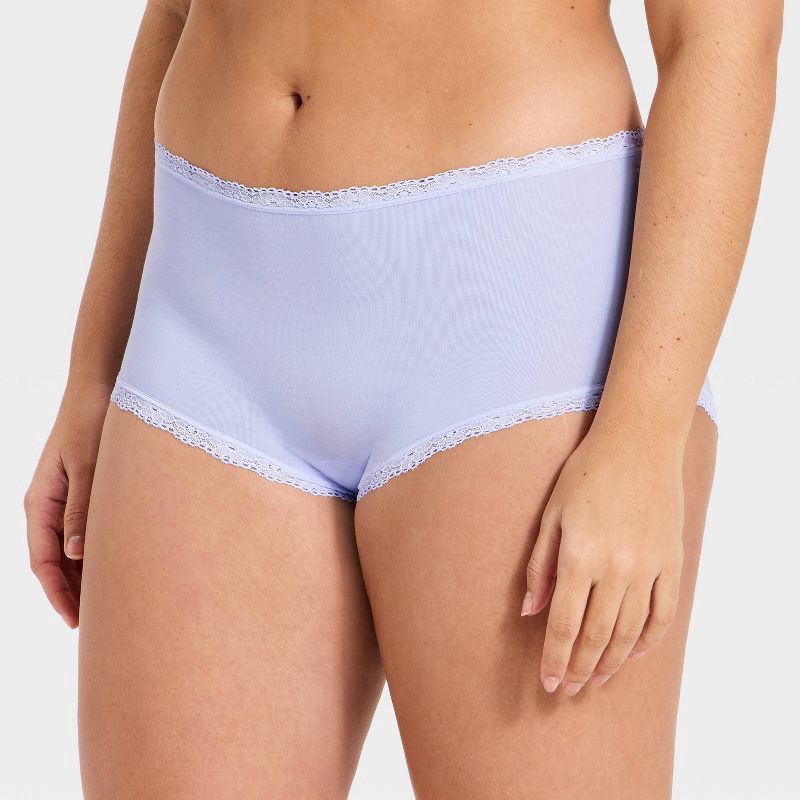 Give a boost of style to your intimates drawer with this Cloud Knit Lace Trimmed Boyshorts Underwear from Auden™. This cloud-knit boyshorts underwear is crafted from modal-spandex blend fabric to keep…