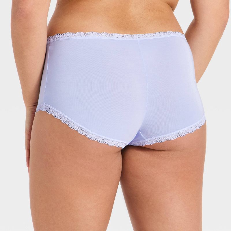 Women's Cloud Knit Lace Trimmed Boy Shorts Underwear - Auden™ Blue XL