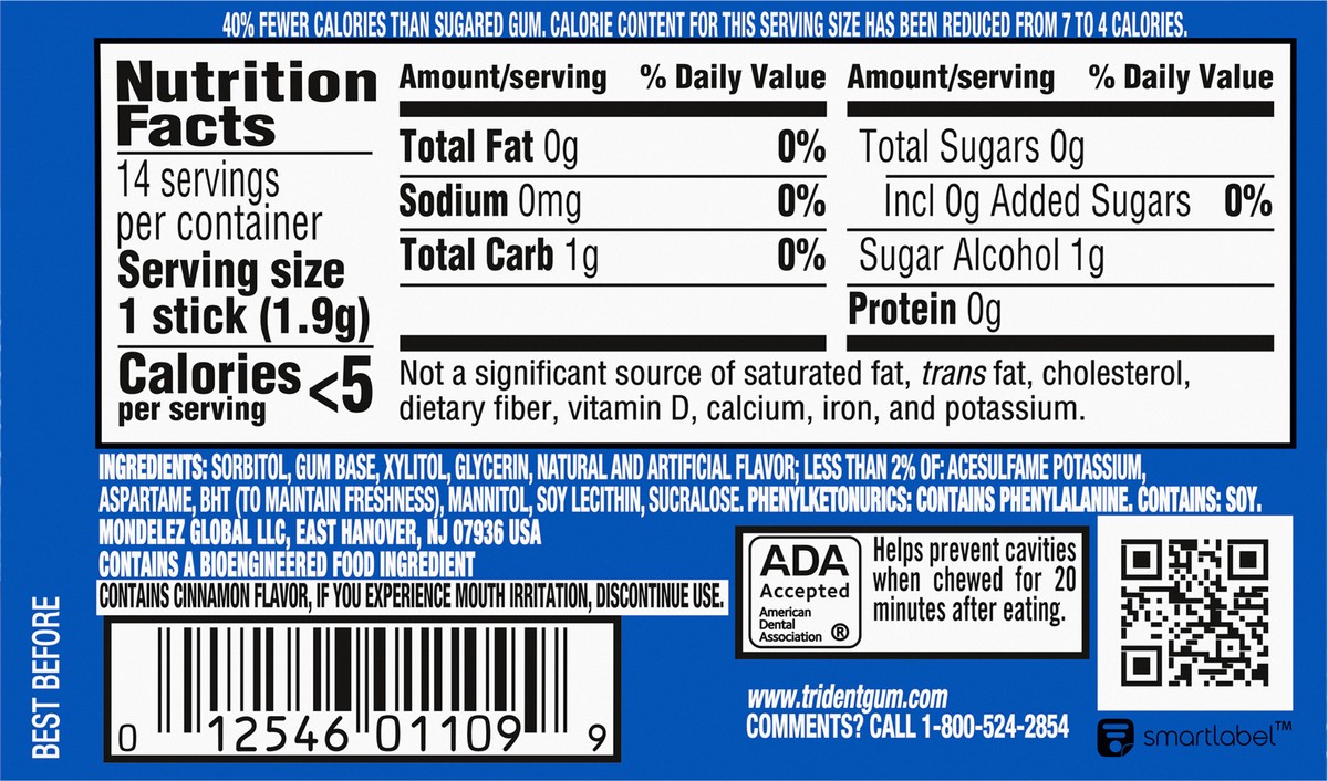 INGREDIENTS: SORBITOL, GUM BASE, XYLITOL, GLYCERIN, NATURAL AND ARTIFICIAL FLAVOR; LESS THAN 2% OF: ACESULFAME POTASSIUM, ASPARTAME, BHT (TO MAINTAIN FRESHNESS), MANNITOL, SOY LECITHIN, SUCRALOSE. PHE…