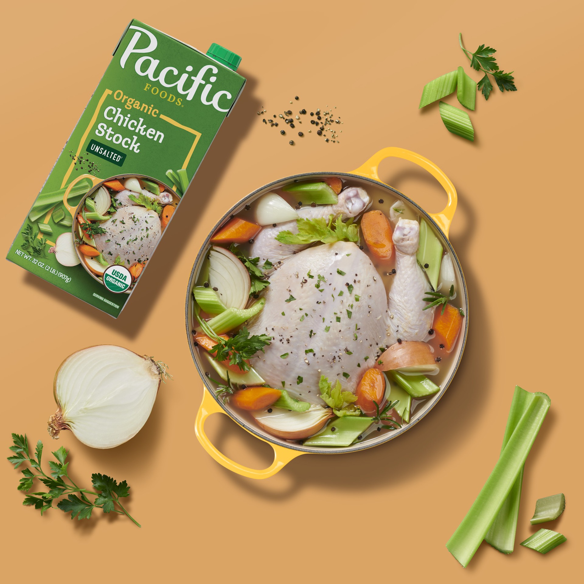 Effortlessly craft extraordinary meals with Pacific Foods Organic Unsalted Chicken Stock. We slow-simmer organic chicken meat and bones with just the right amount of seasonings for a rich and savory c…