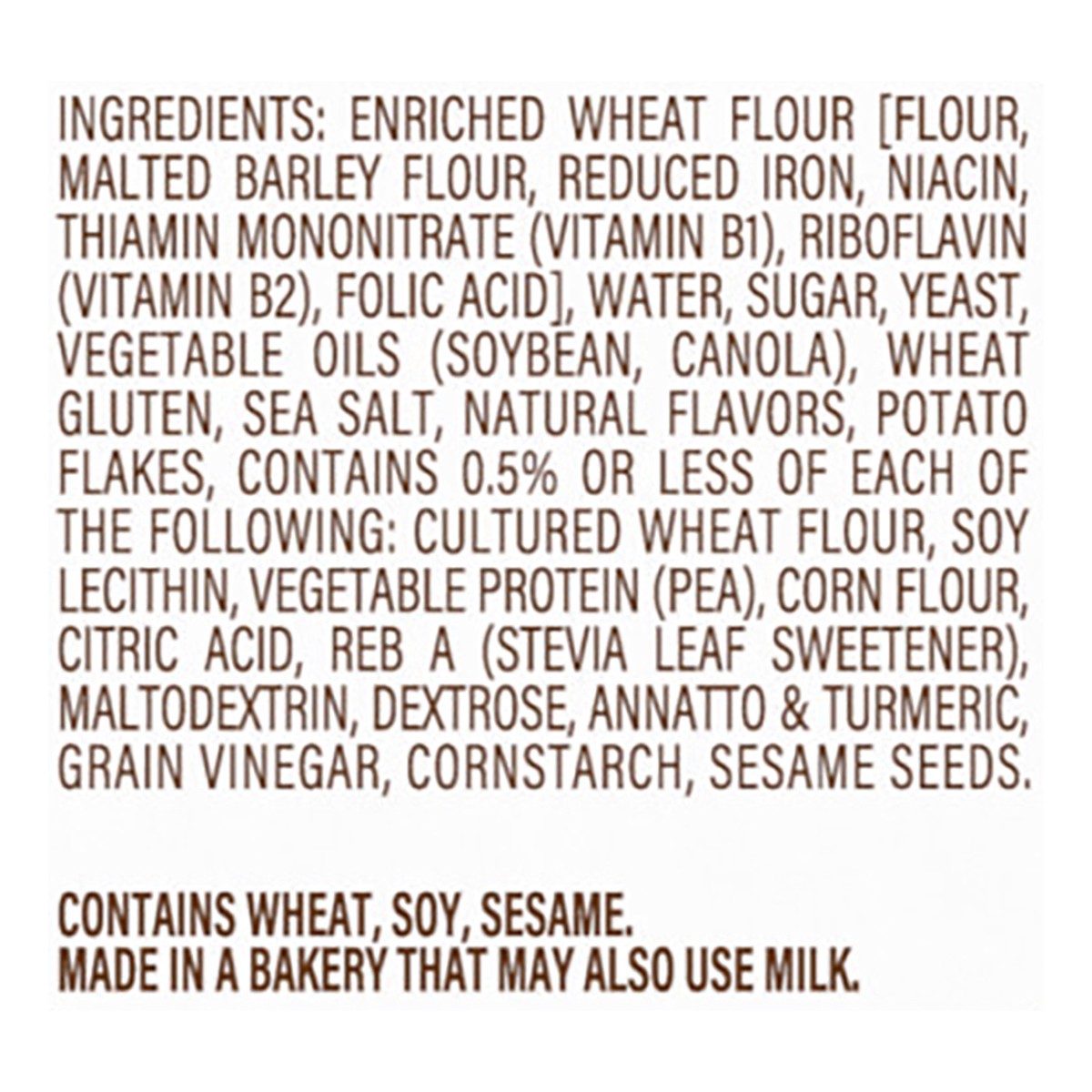 Enriched Wheat Flour [Flour, Malted Barley Flour, Reduced Iron, Niacin, Thiamin Mononitrate (Vitamin B1), Riboflavin (Vitamin B2), Folic Acid], Water, Sugar, Yeast, Vegetable Oils (Soybean, Canola), W…
