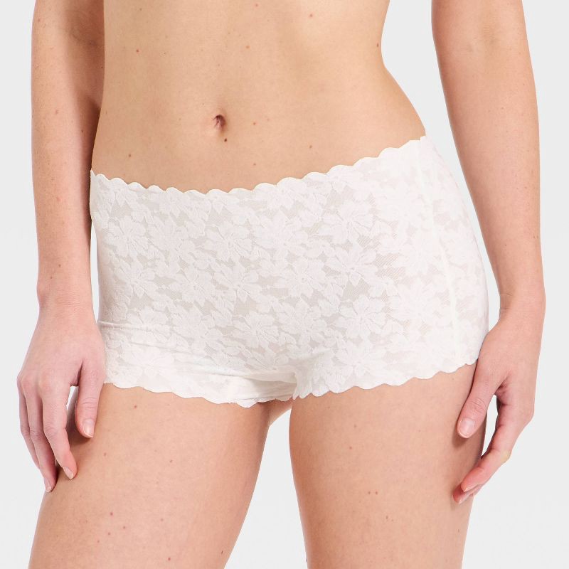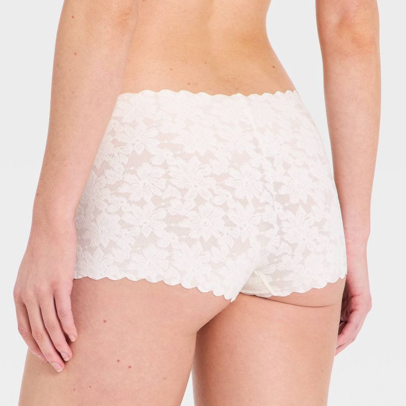Women's Invisible Edge Lace Boy Shorts Underwear - Auden™ White M