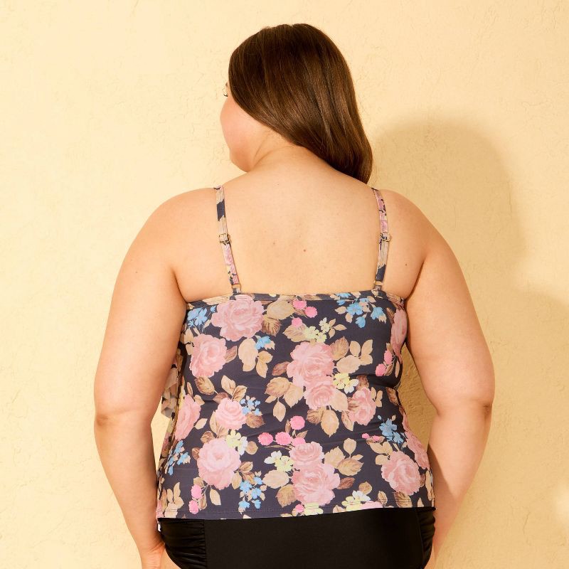 Women's Floral Print Tiered Ruffle Tankini Top - Shade & Shore™ Blue/Pink 1X