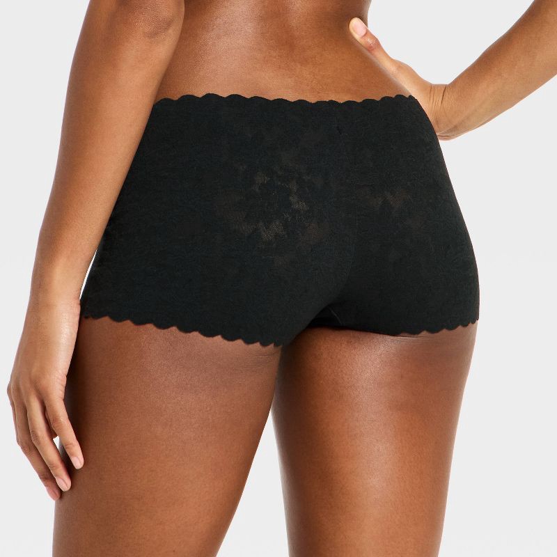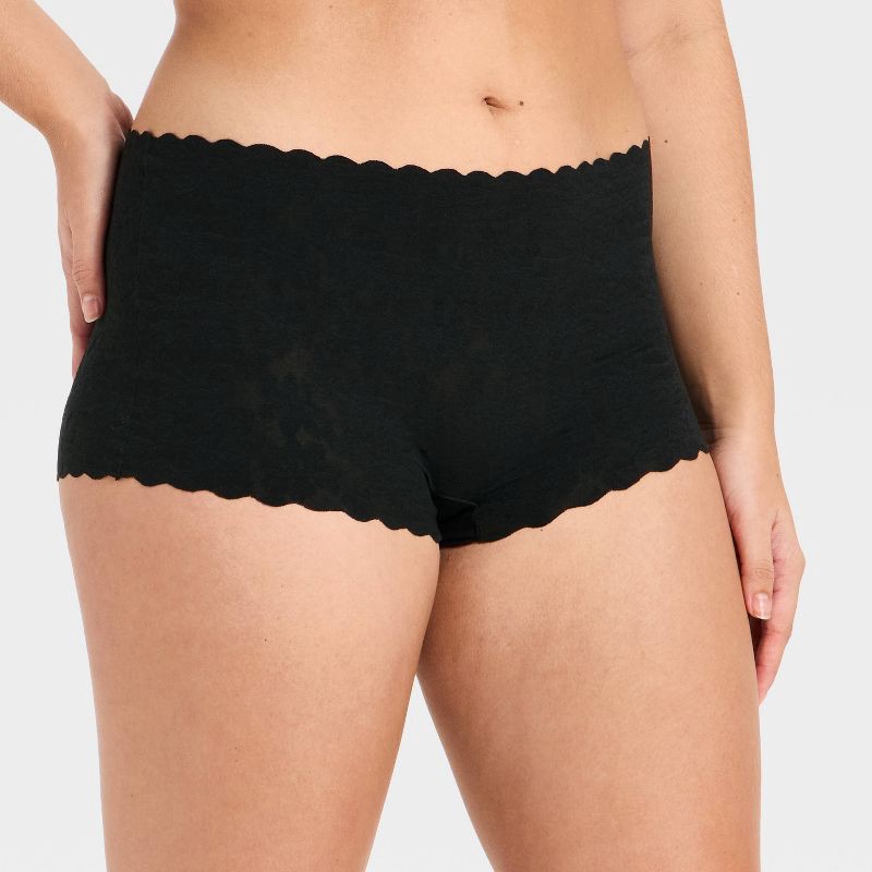 Women's Invisible Edge Lace Boy Shorts Underwear - Auden™ Black L