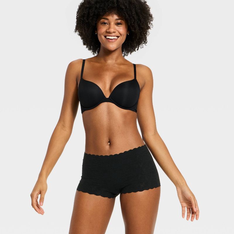 Enhance your everyday wardrobe with style and a dash of personality with this Invisible Edge Lace Boy Shorts Underwear from Auden™. This pull-on boy shorts underwear is made from soft nylon-spandex bl…