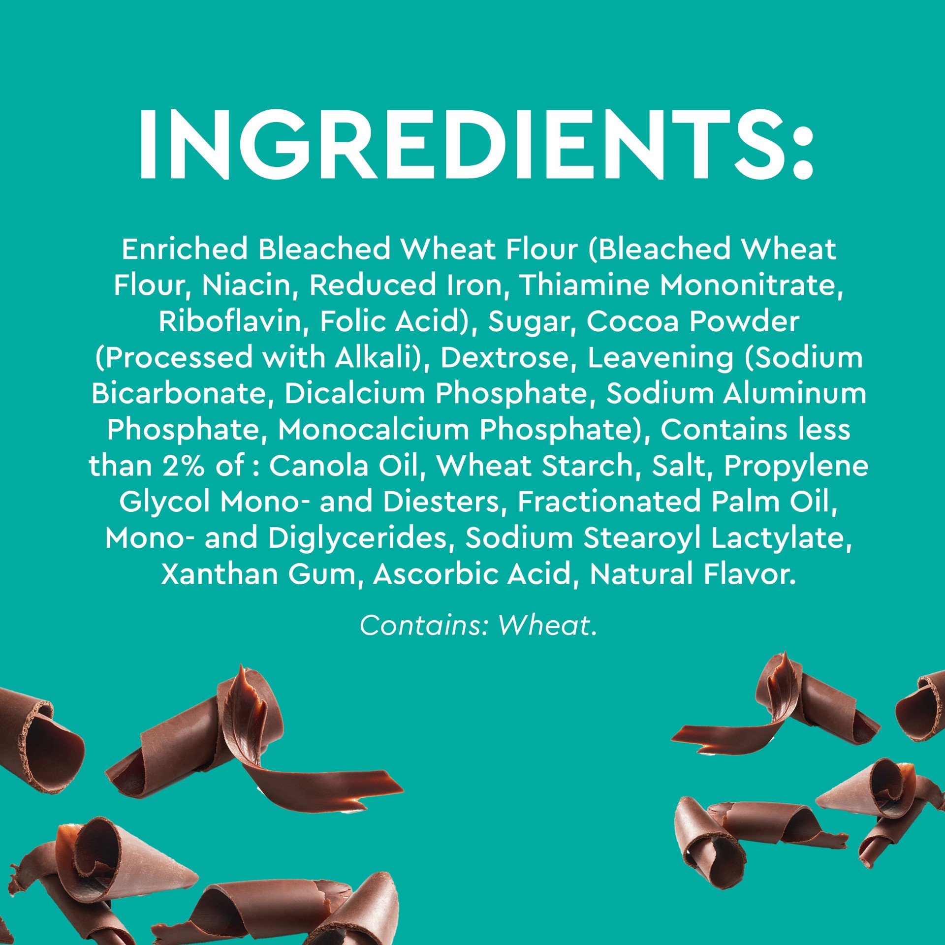 INGREDIENTS: SUGAR, ENRICHED BLEACHED WHEAT FLOUR (WHEAT FLOUR, NIACIN, REDUCED IRON, THIAMINE MONONITRATE, RIBOFLAVIN, FOLIC ACID), COCOA POWDER PROCESSED WITH ALKALI, EMULSIFIED PALM SHORTENING (PAL…
