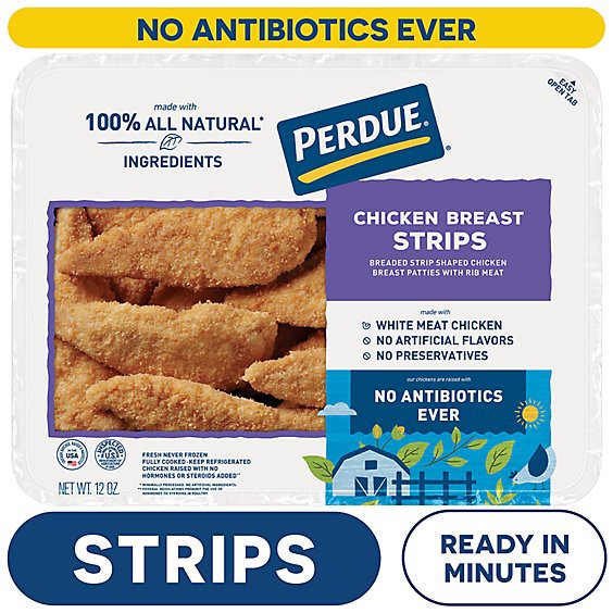Perdue Refrigerated Breaded No Antibiotics Ever Chicken Breast Strips Tray Case - 12 Oz