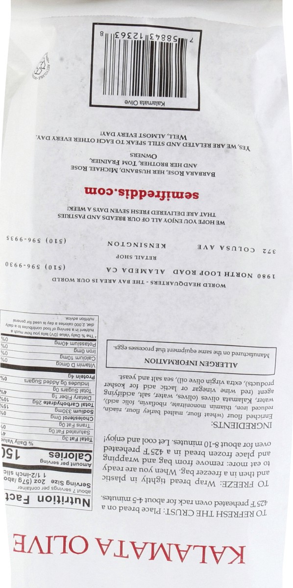 Semifreddis Kalamata Olive Bread - 14 Oz