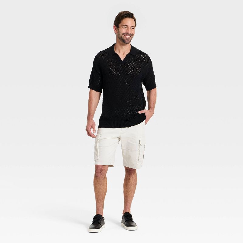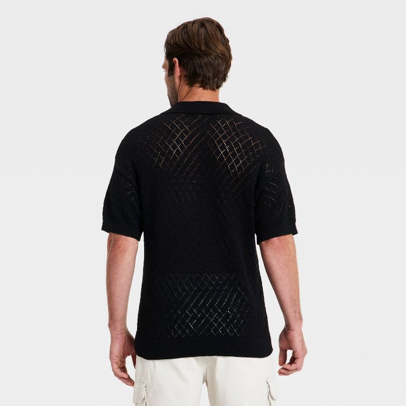 Men's Short Sleeve Open-Work Johnny Collar Polo Sweater - Goodfellow & Co™ Black L