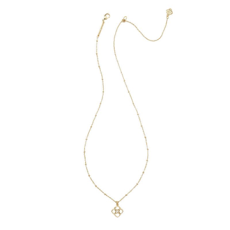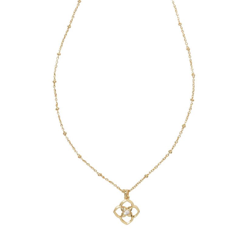 An everyday silhouette is elevated with an eye-catching sparkle in the Iris White Pendant Necklace. A petite, diamond-shaped white crystal pendant shines along a delicate chain, making a glamorous nec…