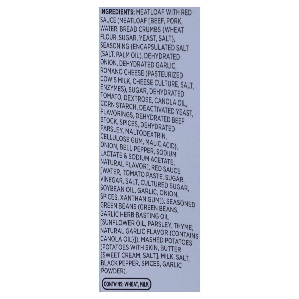 Meatloaf with Red Sauce (Meatloaf [Beef, Pork, Water, Bread Crumbs (Wheat Flour, Sugar, Yeast, Salt), Seasoning (Encapsulated Salt (Salt, Palm Oil), Dehydrated Onion, Dehydrated Garlic, Romano Cheese …