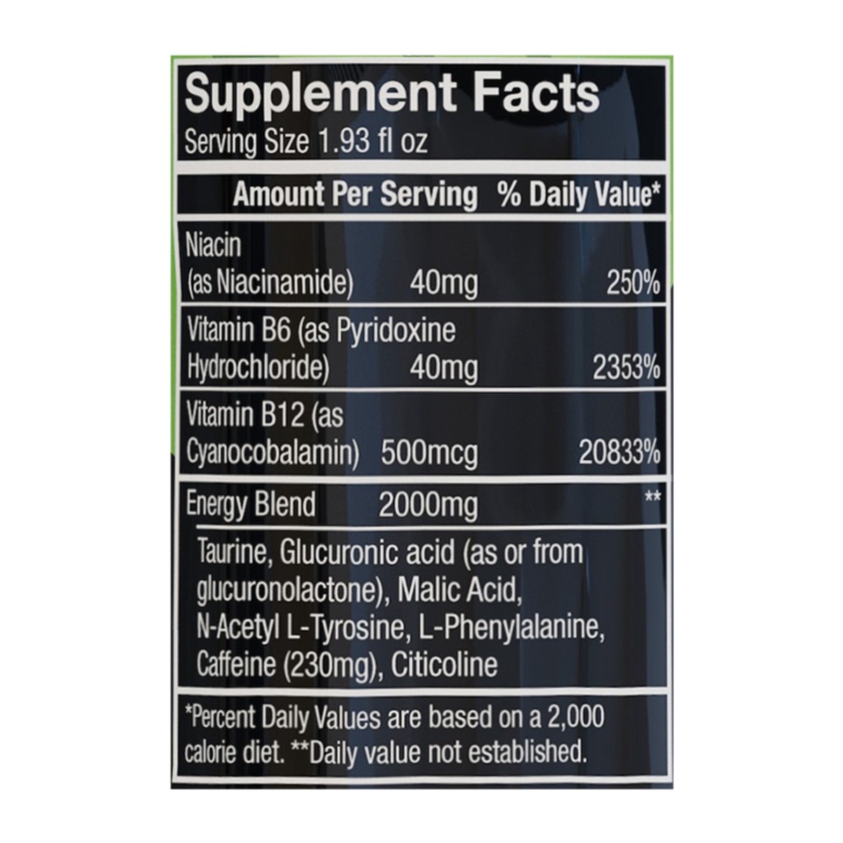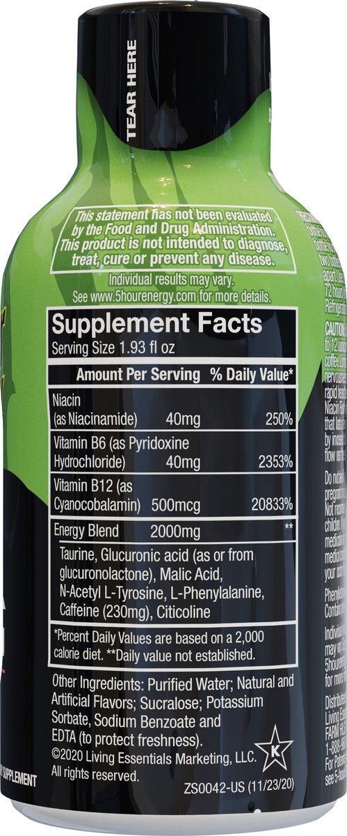Vitamins. Nutrients. Caffeine. Individual results may vary. See 5hourenergy.com for more information.