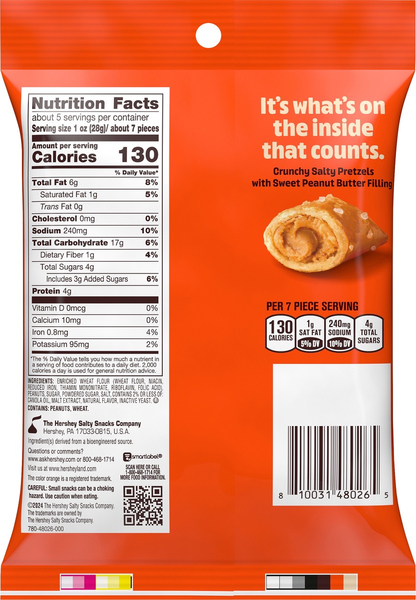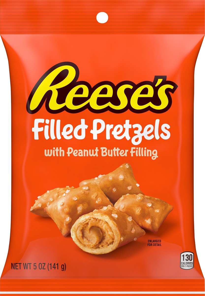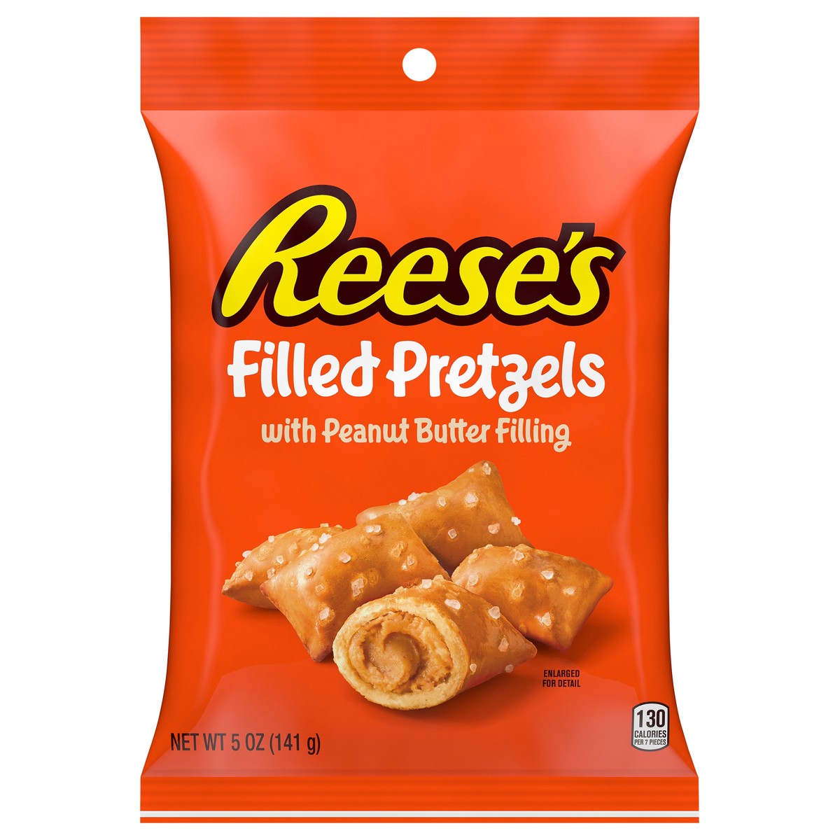 These crunchy and slightly salty pretzels are filled with delicious, lightly sweet Reese’s peanut butter, delivering the snacking power of pretzels and the flavor you love from the Reese’s brand