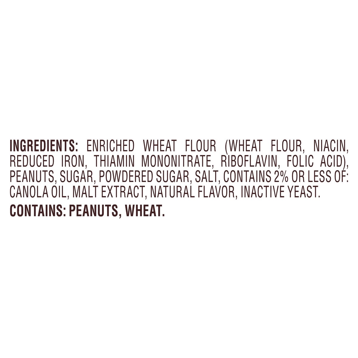 Enriched Wheat Flour (Wheat Flour, Niacin, Reduced Iron, Thiamin Mononitrate, Riboflavin, Folic Acid), Peanuts, Sugar, Powdered Sugar, Salt, Contains 2% or Less of: Canola Oil, Malt Extract, Natural F…