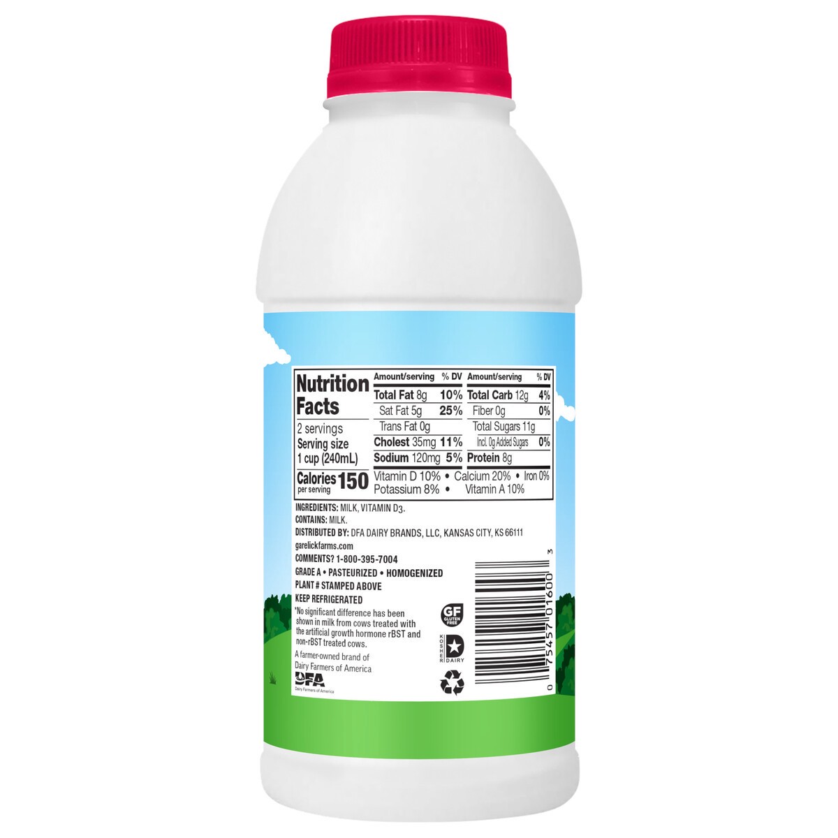 - One (1) pint of Garelick Farms Whole Milk with Vitamin D
