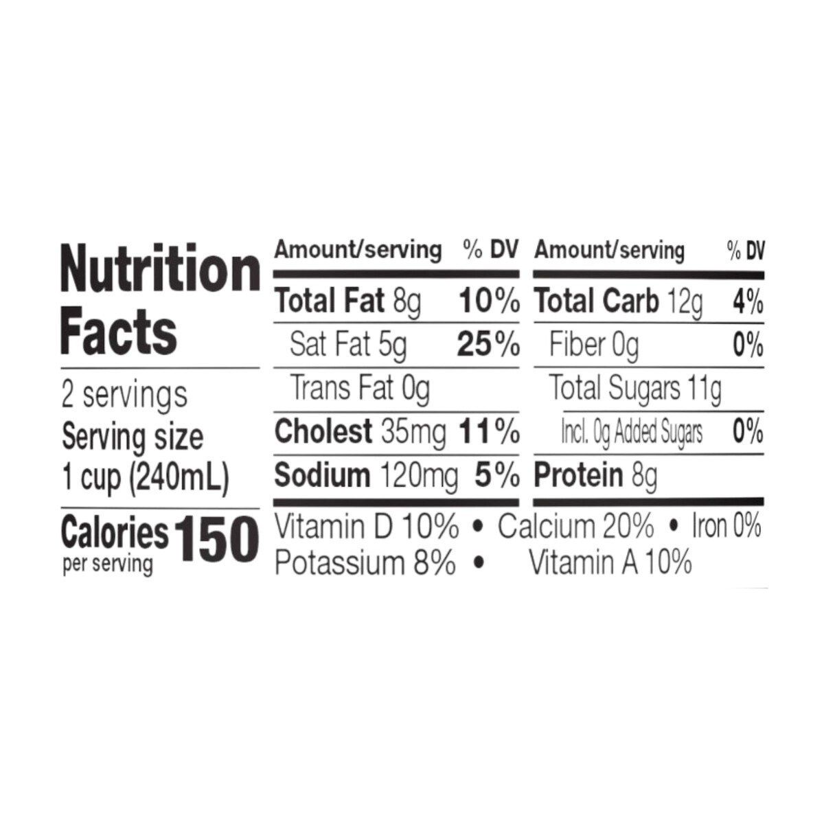 - Refreshing whole dairy milk with 150 calories and 8 grams of protein per serving