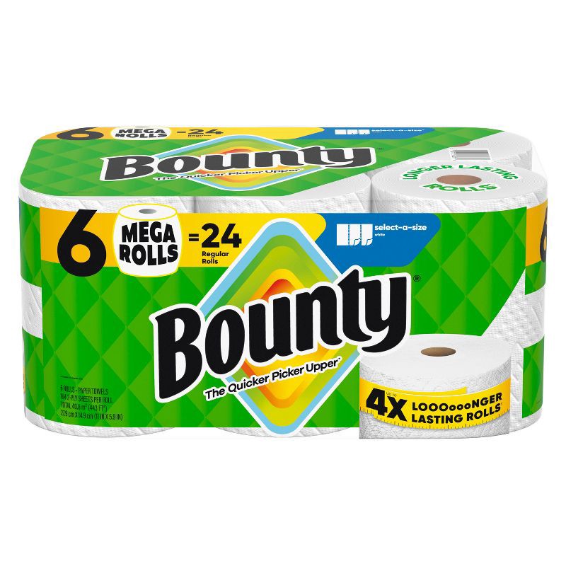 - MEGA VALUE: Each pack includes 6 mega rolls, equivalent to 24 regular rolls. Each roll of Bounty paper towels has 164 sheets, reducing the need for frequent replacement.