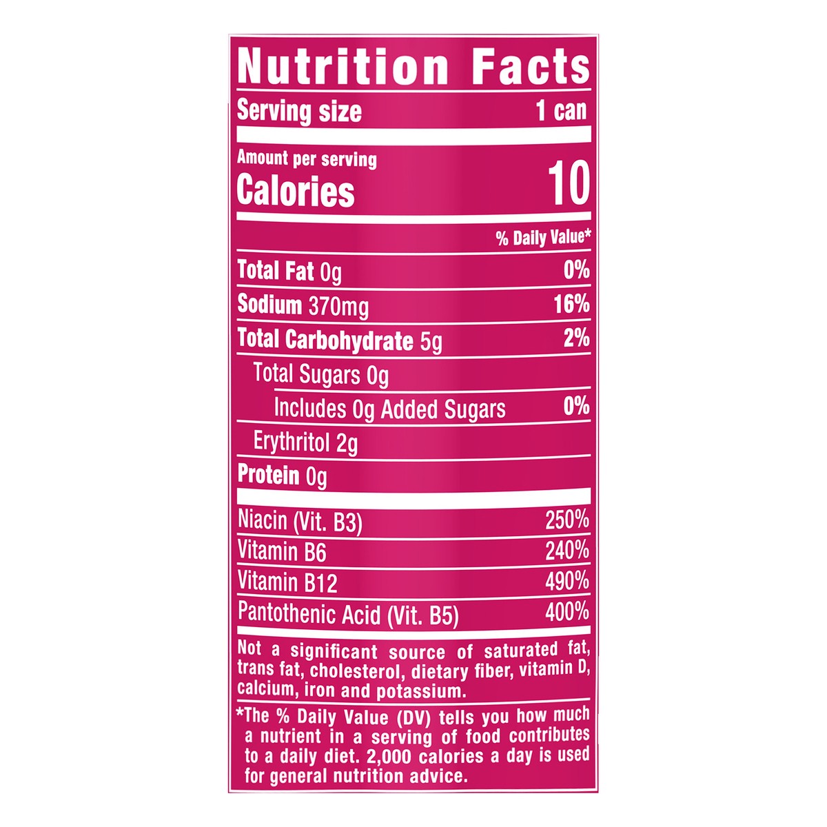 Carbonated Water, Citric Acid (pH Control), Taurine, Erythritol, Sodium Citrate, Natural Flavors, Panax Ginseng Flavor, L-Carnitine L-Tartrate, Potassium Sorbate (Preservative), Caffeine, Acesulfame P…