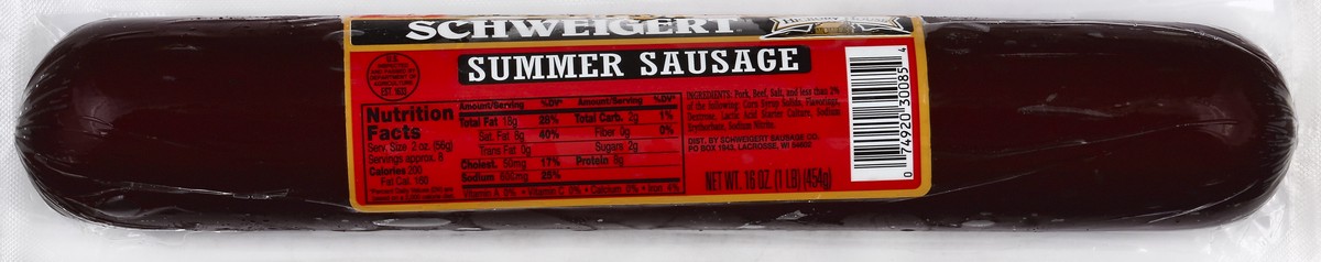 Pork, Beef, Salt, and Less than 2% of the Following: Corn Syrup Solids, Flavorings, Dextrose, Lactic Acid Starter Culture, Sodium Erythorbate, Sodium Nitrite.