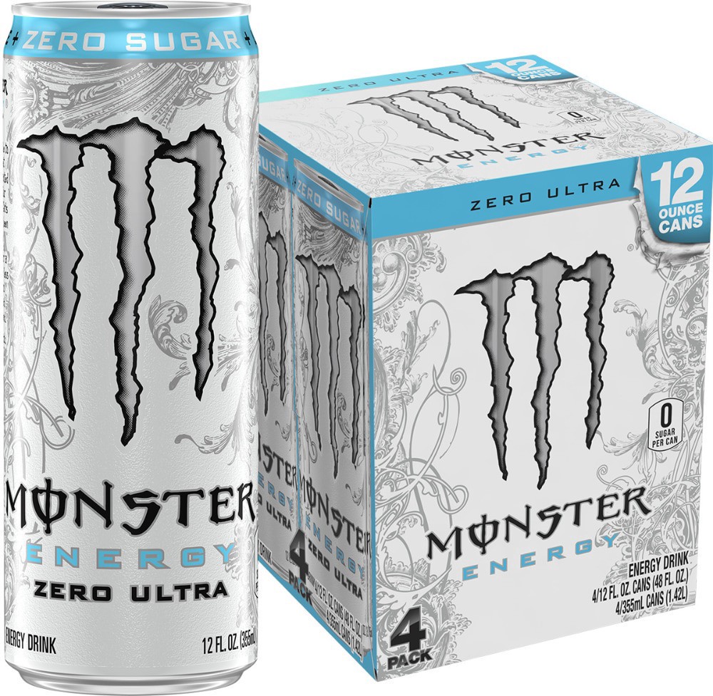 0 sugar per can. Zero sugar. Monster Energy Zero Ultra is low in calories. Monster Energy Blend: Taurine, L-carnitine, caffeine, inositol. Caffeine from All Sources: 110 mg per can. monsterenergy.com.