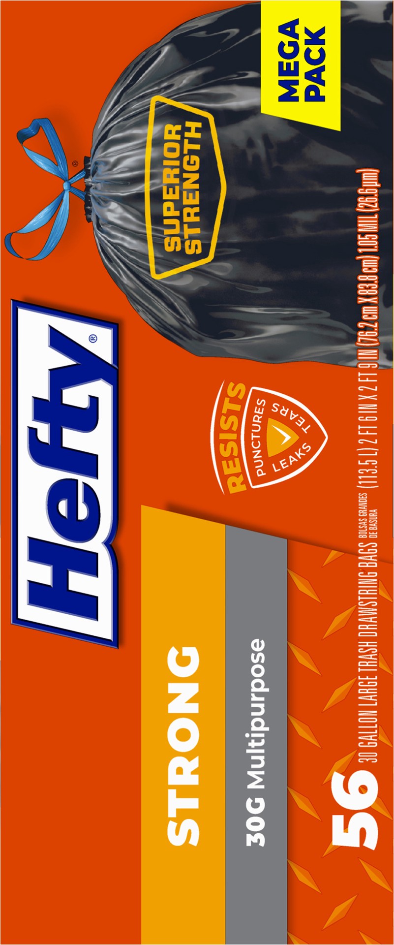 Hefty Strong 30 Gallon Trash Bags help you tackle cleanup jobs all around the house, thanks to their Hefty! Hefty! Hefty! strength and large capacity. These kitchen trash bags are built strong to resi…