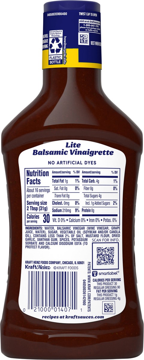Kraft Lite Balsamic Vinaigrette - 16 Fl. Oz.