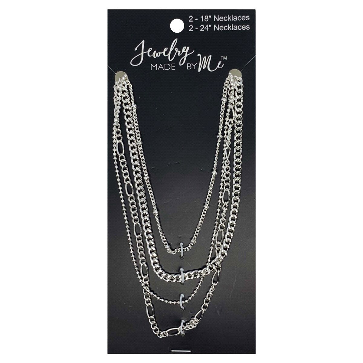 Complete your jewelry making with these classic silver necklaces. There are four in all, each one is unique. There is a small link chain with a ball every 58 inch. There is a flat link chain and a bal…