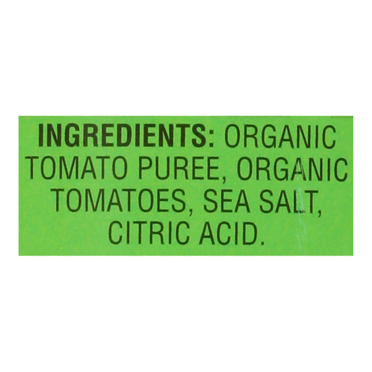 Organic Tomato Puree, Organic Tomatoes, Sea Salt, Citric Acid.