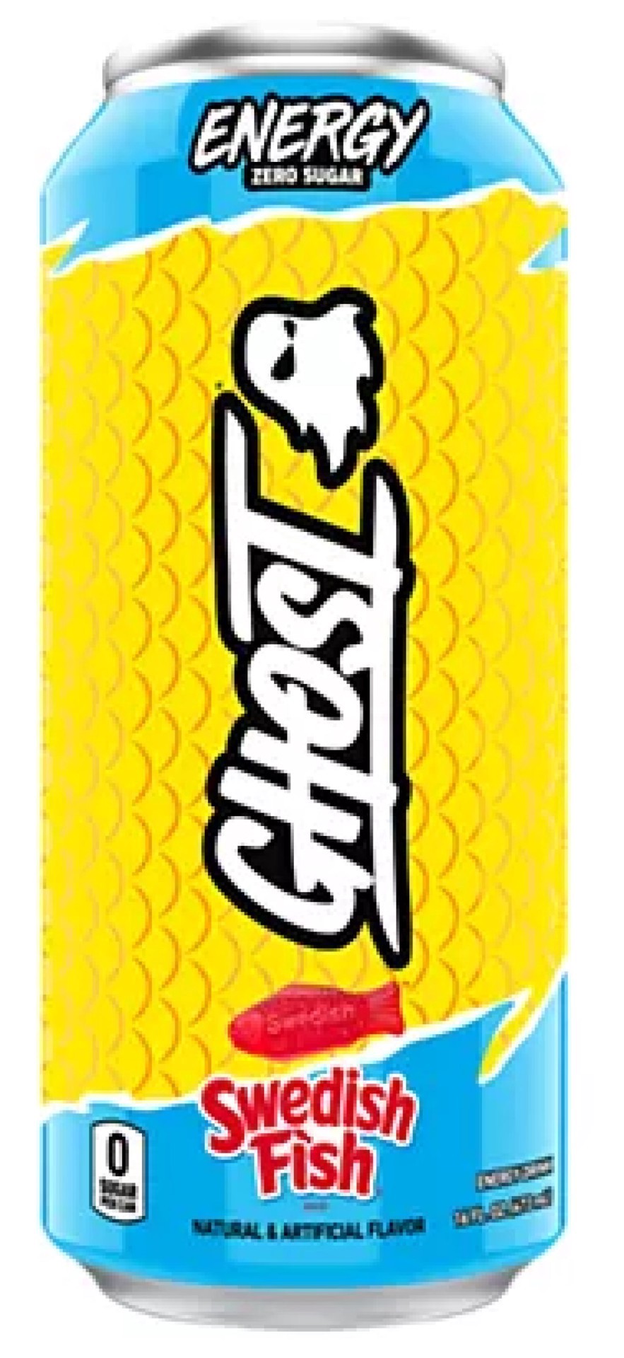 Ghost’s Swedish Fish Zero Sugar Energy Drink delivers a bold, sweet flavor reminiscent of the classic Swedish Fish candy. Each can provides 200 mg of smooth, crash-free caffeine, paired with functiona…