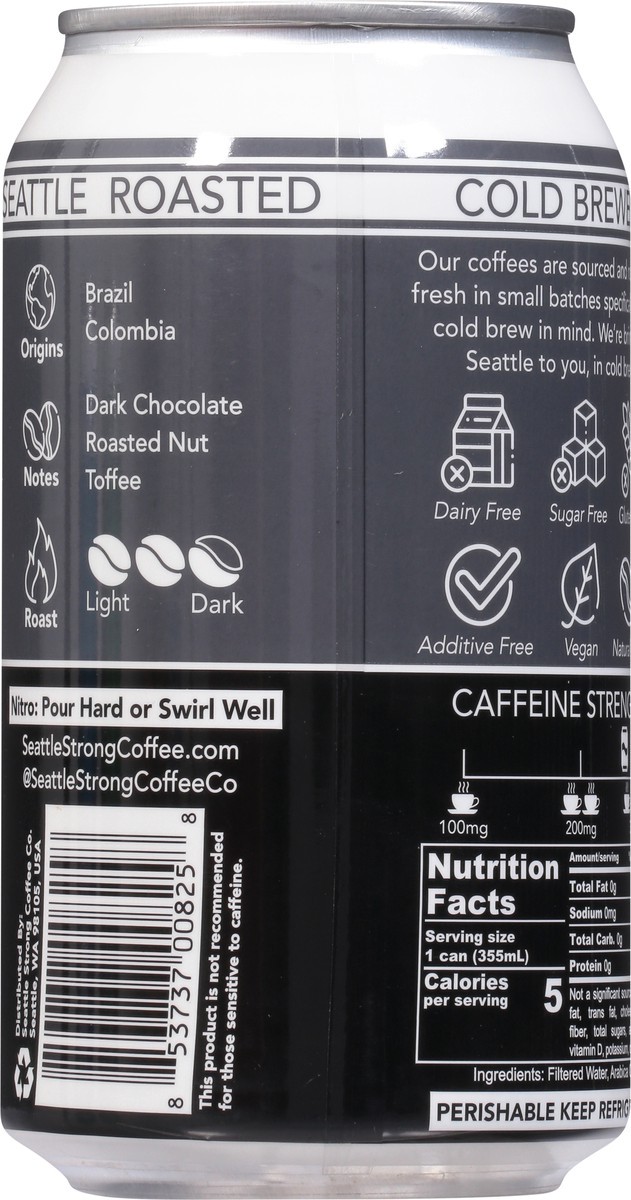 Seattle Strong Nitro Cold Brew Unsweetened Bold Coffee 12 fl oz