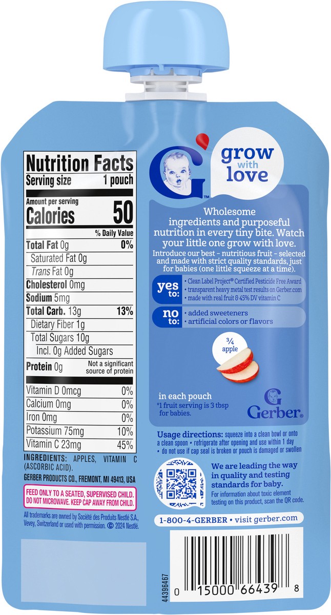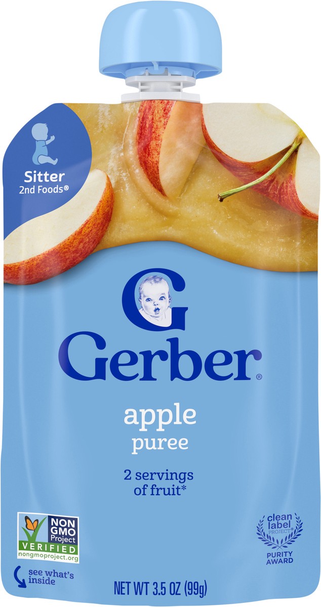 - PUREED FRUIT: With your child in mind, our Gerber baby food apple puree offers 2 servings* of fruit per pouch